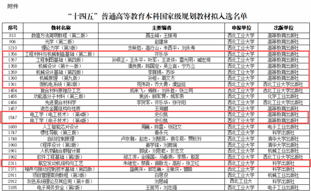 此次学院入选的 9 本教材,既包含《机械原理(第 九 版)》、《机械设计(第十一版)》等深耕基础、筑牢学生知识体系的经典核心教材,也涵盖《微机电系统(第 2 版)》、《工程材料与机械制造基础(第二版)》、《航空发动机结构与工艺》等紧扣航空航天、先进制造等国家战略领域需求的特色教材。每本教材均凝聚了教材团队多年的教学积淀、国家级科研项目成果与行业实践经验,是我院 “以教促研、以研赋能教学、教研产深度融合” 育人理念的生动实践,充分彰显了学院教材建设 “对接国家战略、立足学科特色、服务行业发展” 的鲜明导向。
