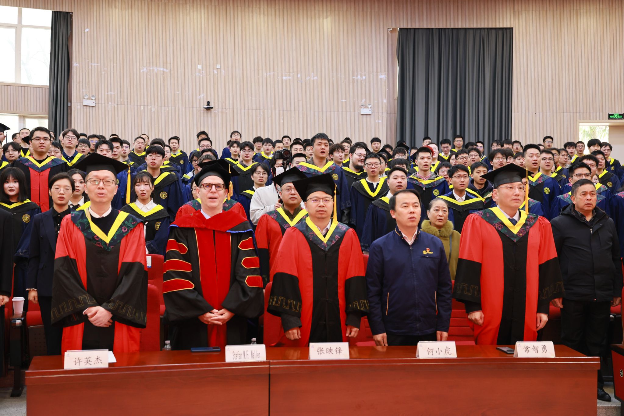 党委书记张映锋和德国品牌应用科学大学校国际合作学术总监Stefan M.F. Waller为毕业生拨穗,并颁发德国品牌应用科学大学硕士学位证书。